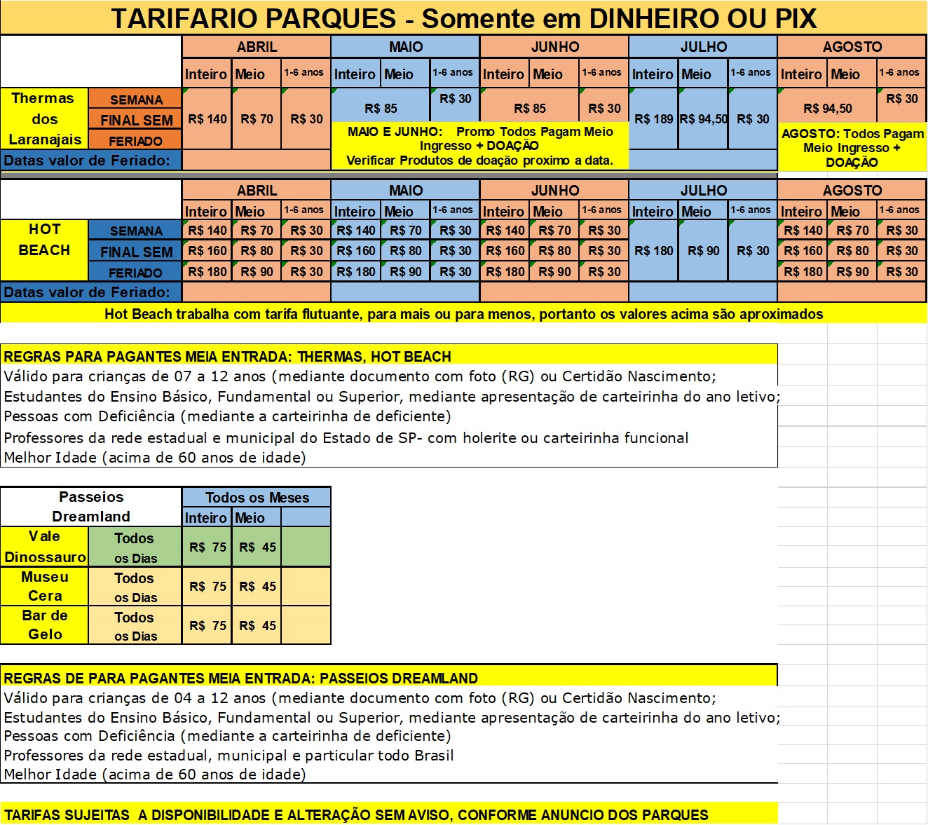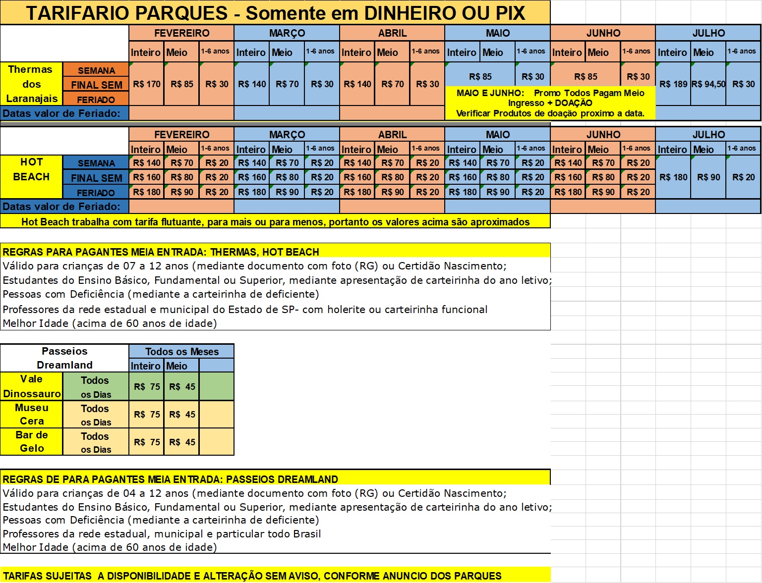 INGRESSOS: THERMAS DOS LARANJAIS, HOT BEACH E DREAMLAND