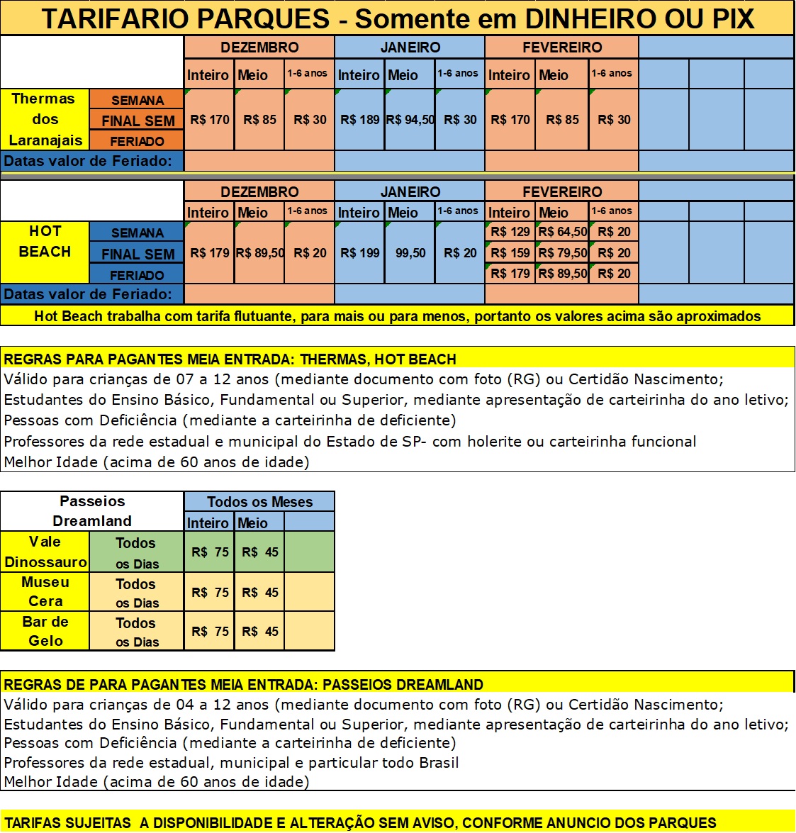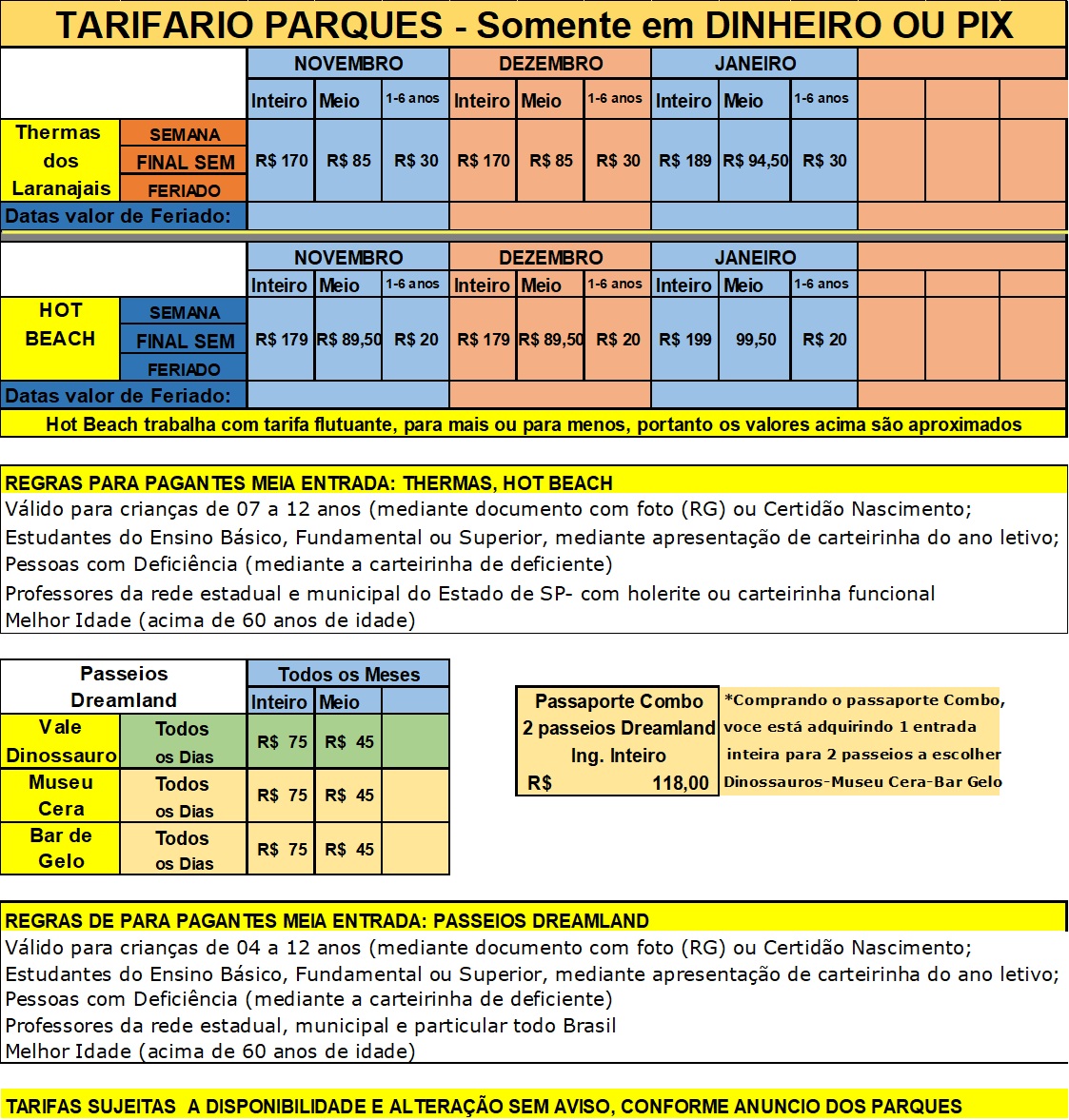 INGRESSOS: THERMAS DOS LARANJAIS, HOT BEACH E DREAMLAND